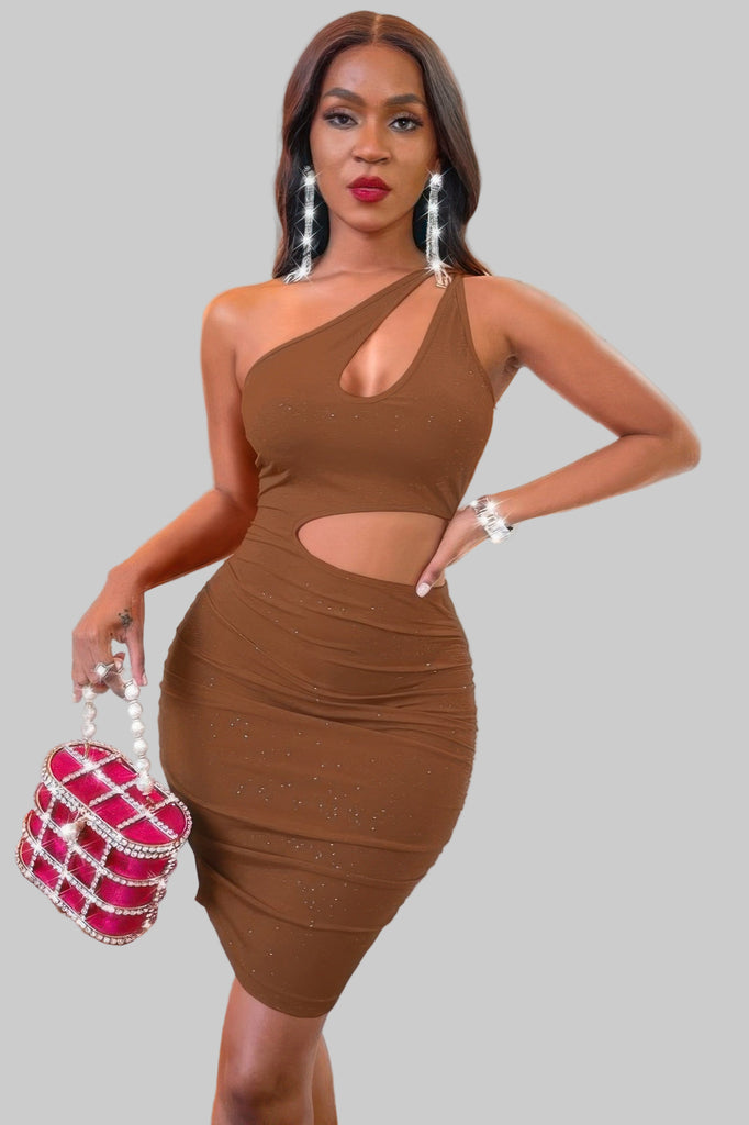 The Cutout Mini Dress is your go-to for sleek, evening-ready style. Featuring a single-shoulder neckline, backless design, and curve-hugging silhouette, this mini dress makes a confident statement. Crafted with soft stretch fabric, it’s made to fit and flatter in all the right ways.