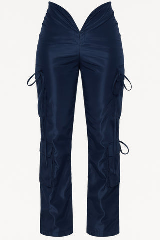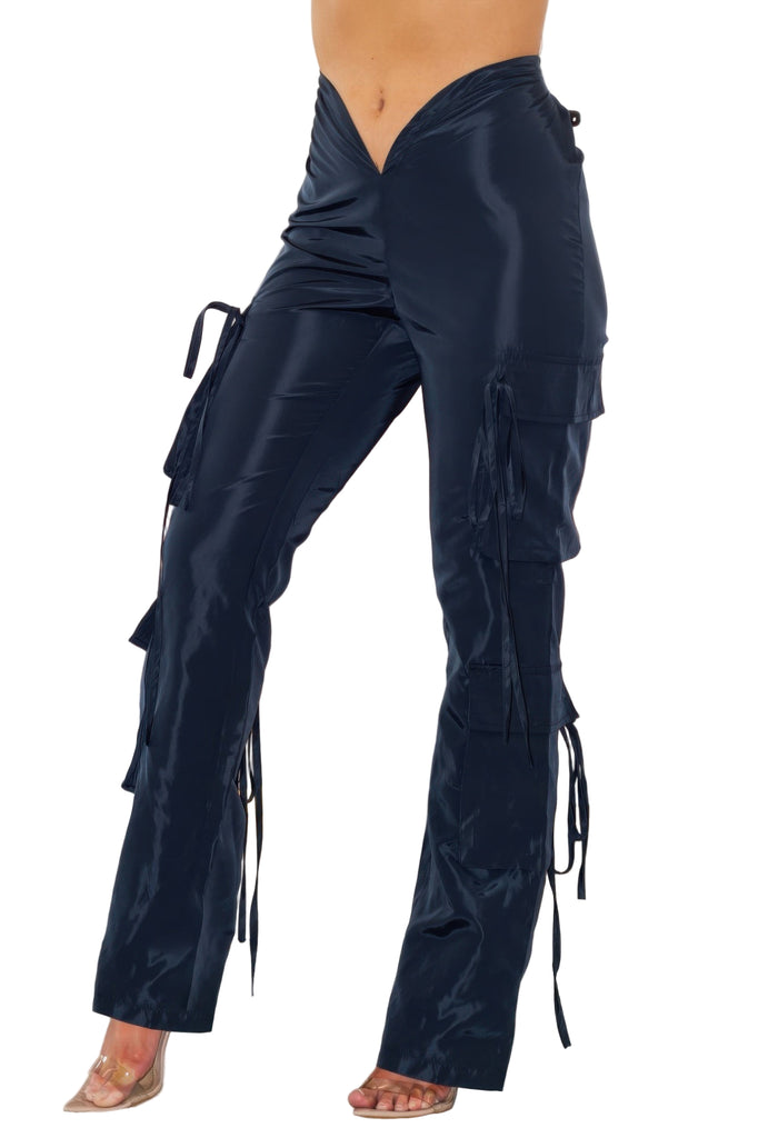 Elevate your streetwear style with these V-Cut Cargo Pants, designed with bold structure and everyday functionality. Featuring a distinctive V-shaped waistline, these pants bring an unexpected edge to the classic cargo silhouette. The wide-leg fit and side cargo pockets provide utility and style. The fabric is non-stretchy yet comfortably structured. Finished with a drawstring waist for an adjustable fit, these pants are perfect for pairing with crop tops, bodysuits, or fitted tees.
